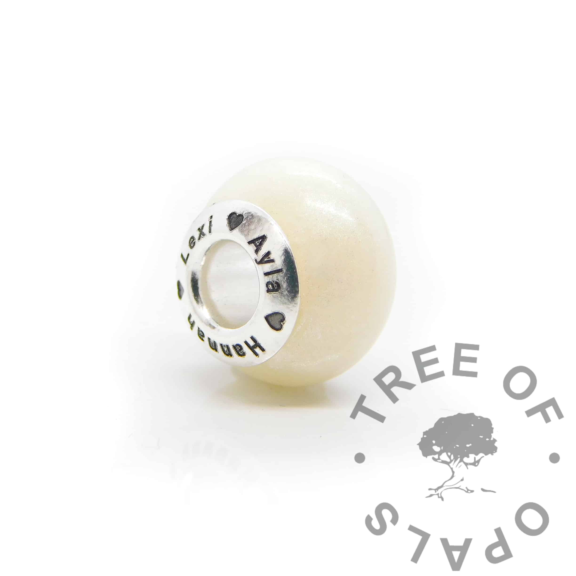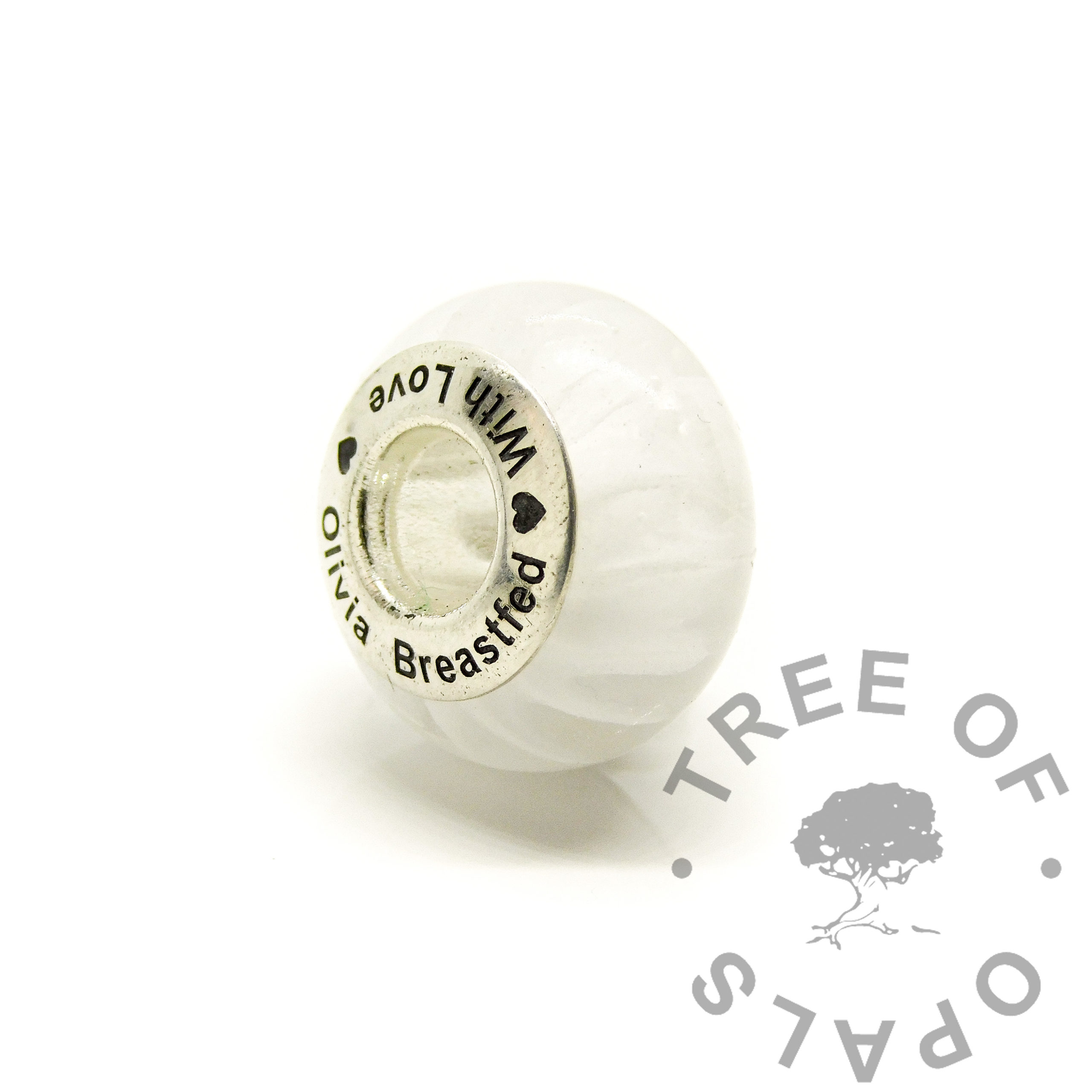 Breastfed With Love (we offer breastmilk beads already stamped with this phrase)