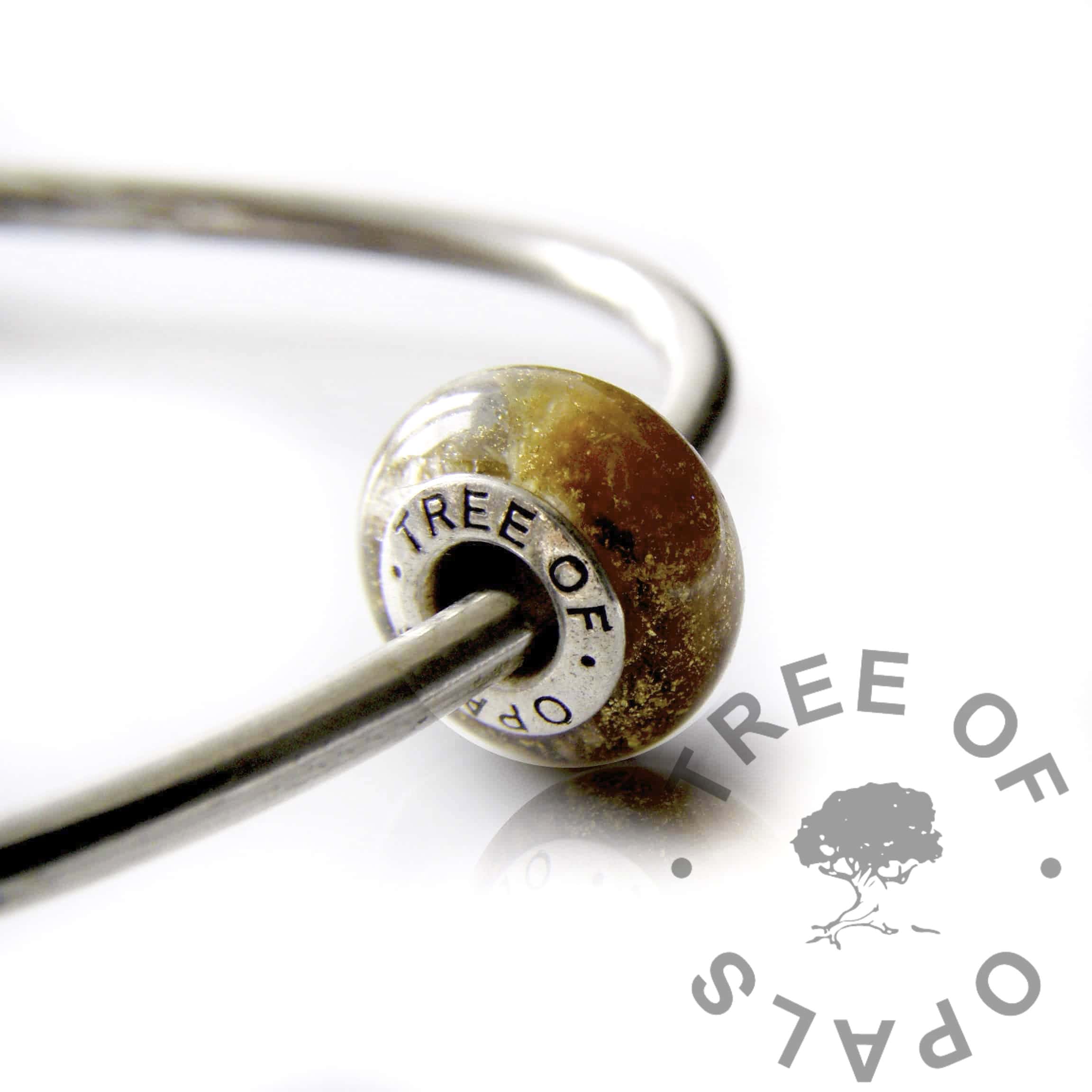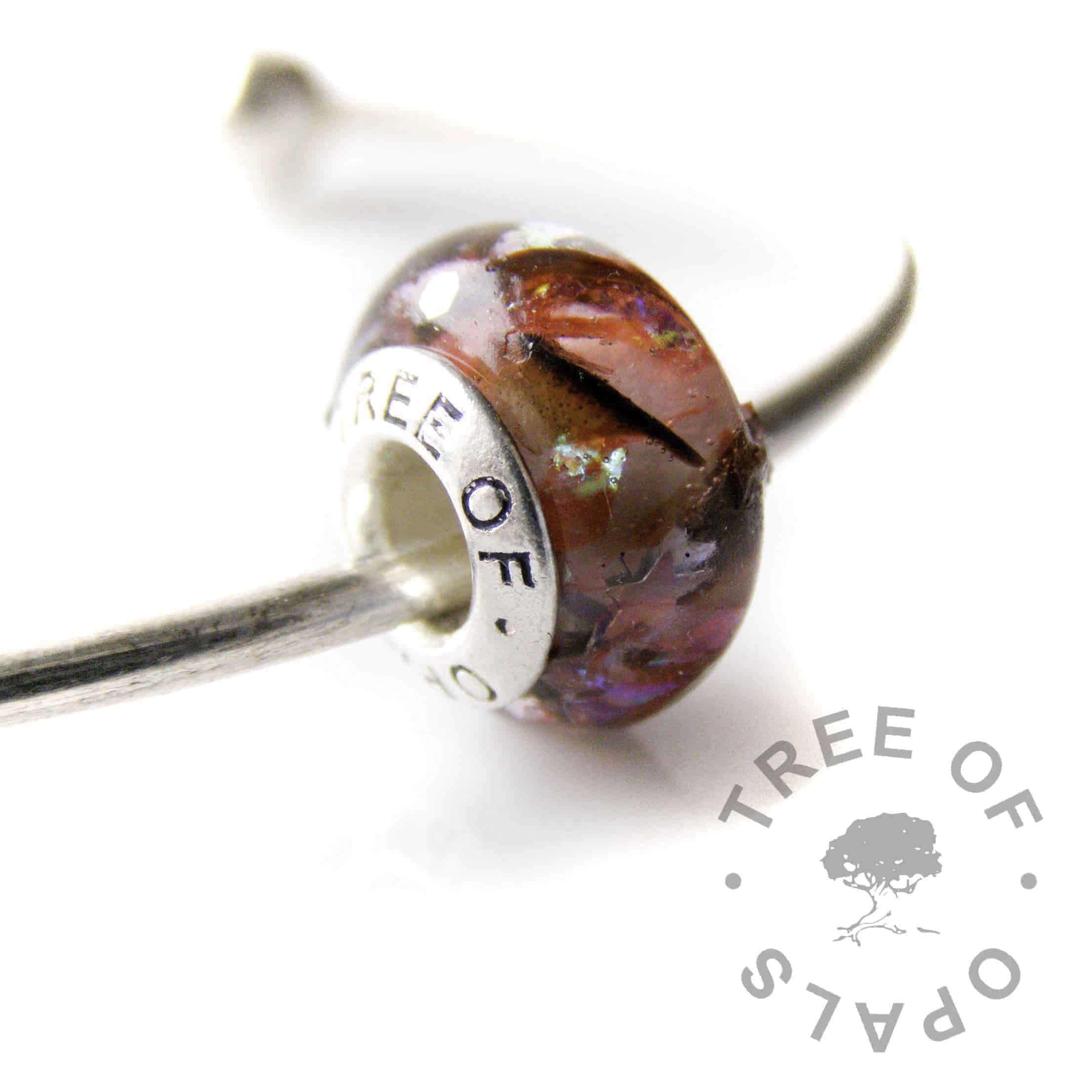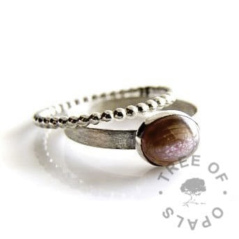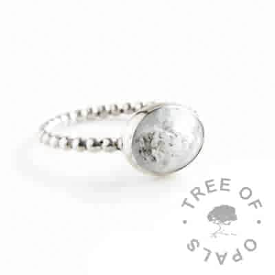 We had one client whose dog passed away where the pet crematorium sealed the urn but we haven’t heard of this being done with human ashes. If you’d like to keep some for a memento from us you can ask the crematorium to separate some out or you can do it yourself any time afterwards. We only need, at most, half a teaspoon which is more than enough for a family order (several pieces). I’ve worked with just seven grains of cremation ashes and find that less is sometimes more. The resin will magnify the ash. Some companies ask for several tablespoons full which is not necessary, and some resin artists mix the ash into resin before pouring but we pour the resin into the mould first then add ashes as necessary.