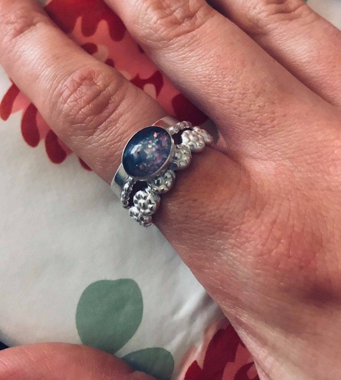 Emma – breastmilk and ashes ring, breastmilk and ashes orb and breastmilk and ashes bead