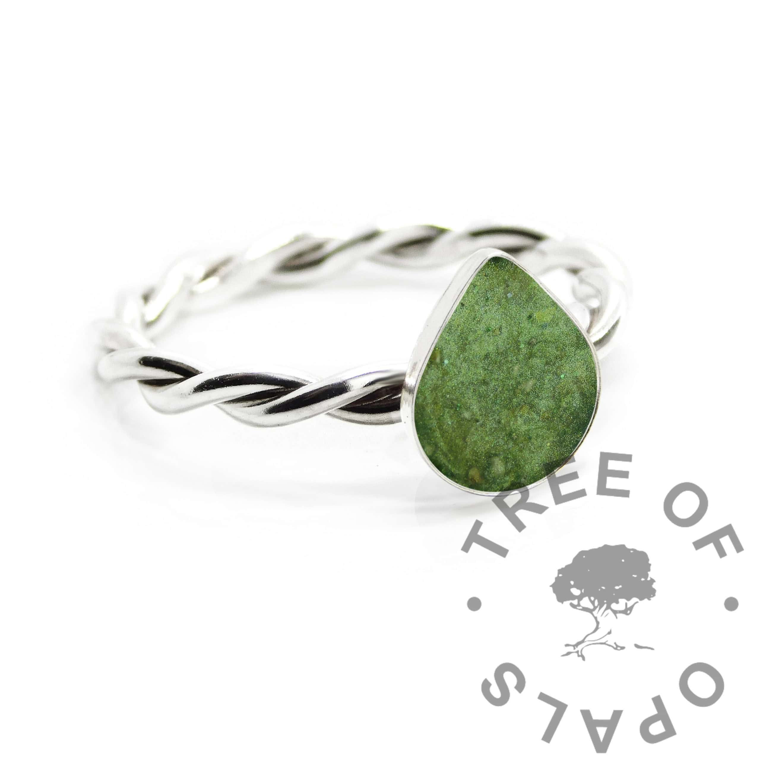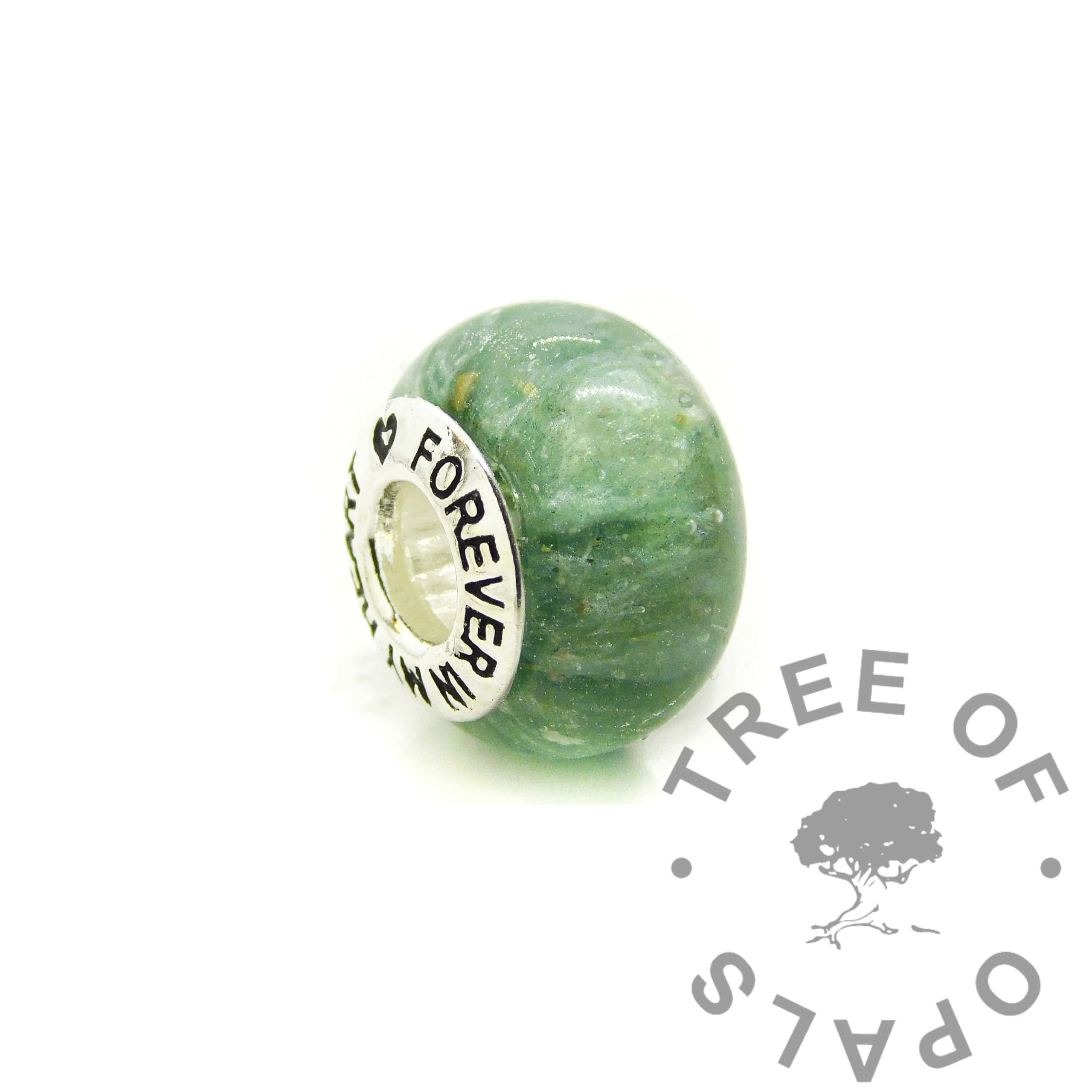 All of our jewellery is set in solid silver or 9ct or 14ct solid gold. We never use plated settings. Our bead cores are branded and fit perfectly onto Pandora bracelets. Our ring, cufflink and pearl settings are handmade from scratch. We offer sign-off photos for each piece to make sure our clients are happy with the colours of their memorials.