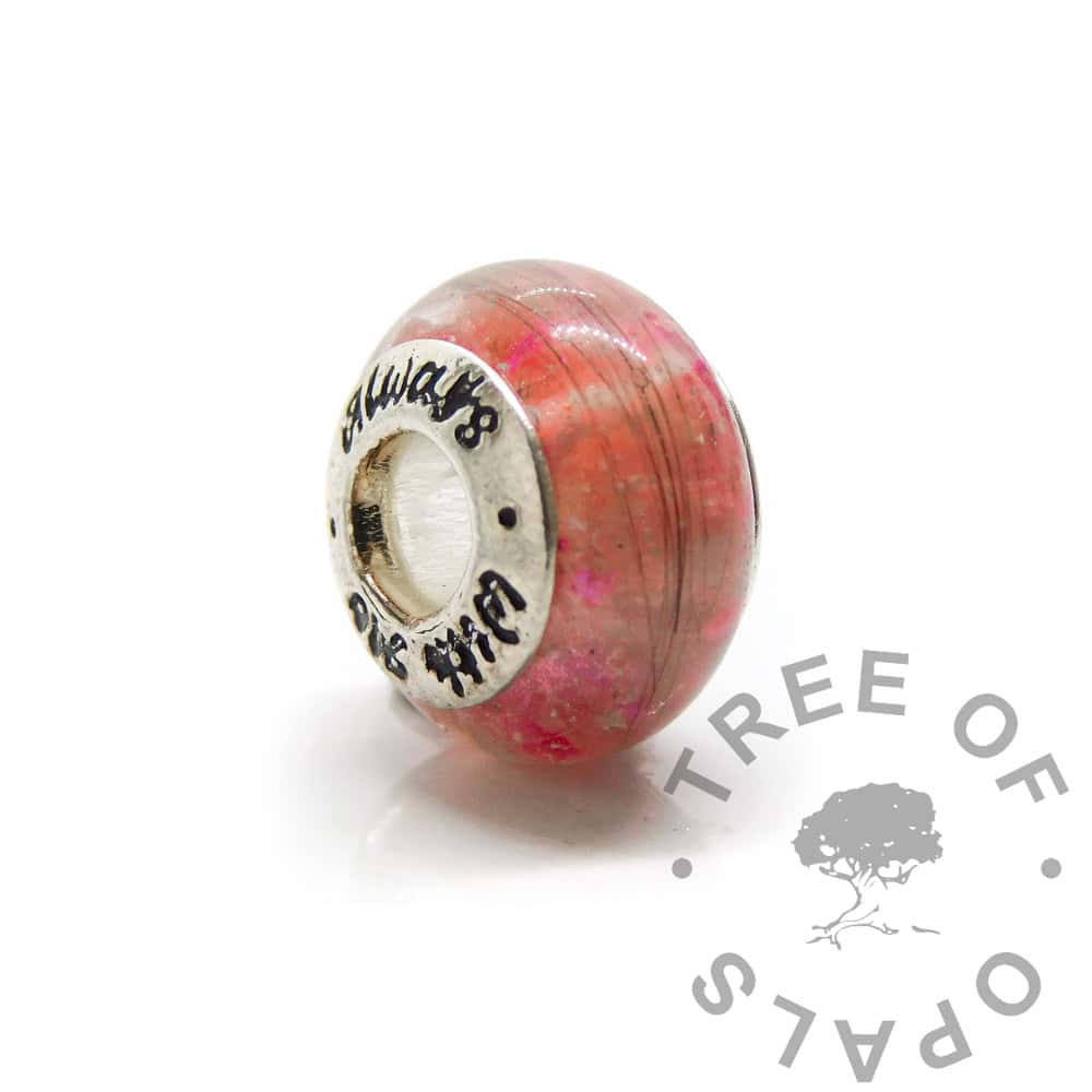 All of our jewellery is set in solid silver or 9ct or 14ct solid gold. We never use plated settings. Our bead cores are branded and fit perfectly onto Pandora bracelets. Our ring, cufflink and pearl settings are handmade from scratch. We offer sign-off photos for each piece to make sure our clients are happy with the colours of their memorials.