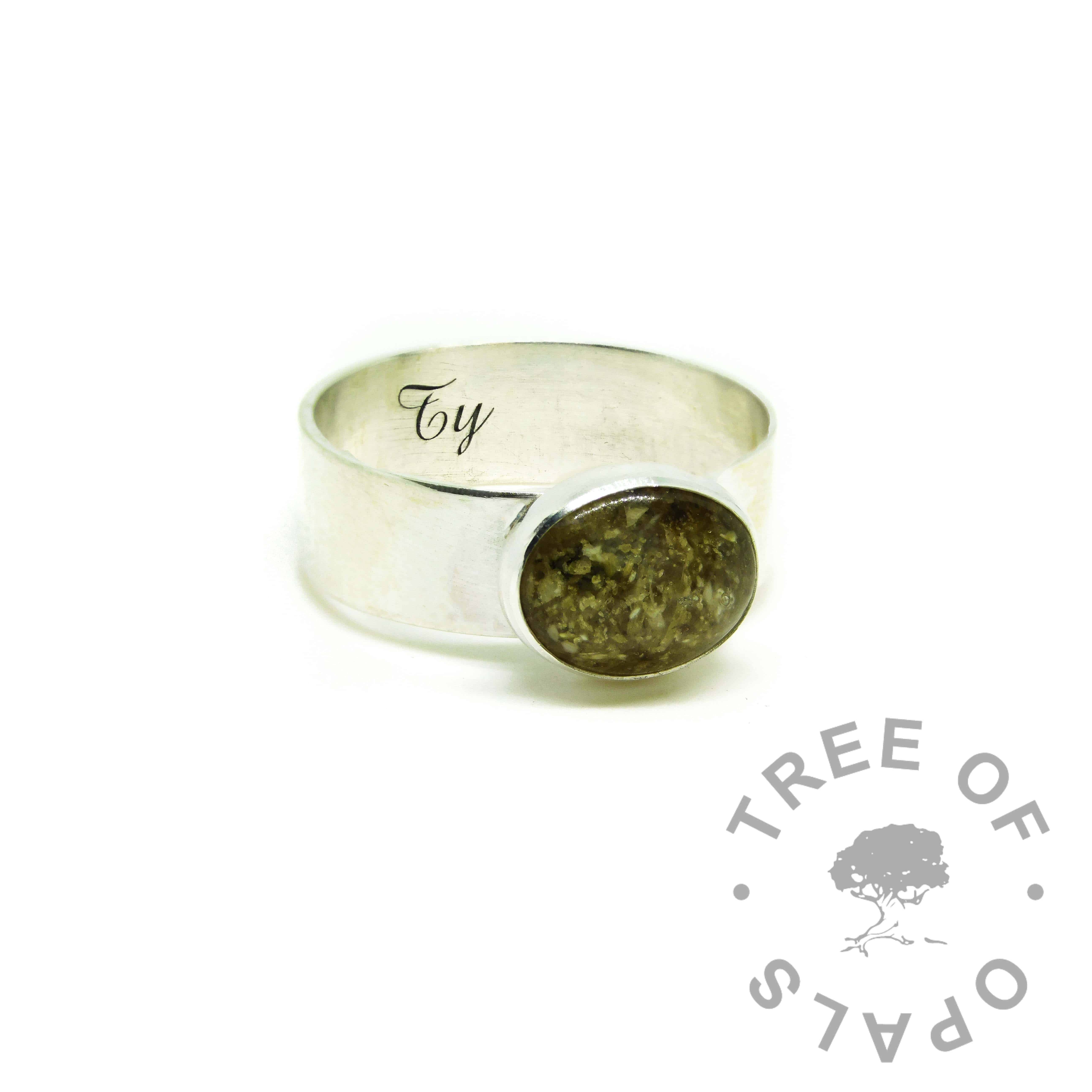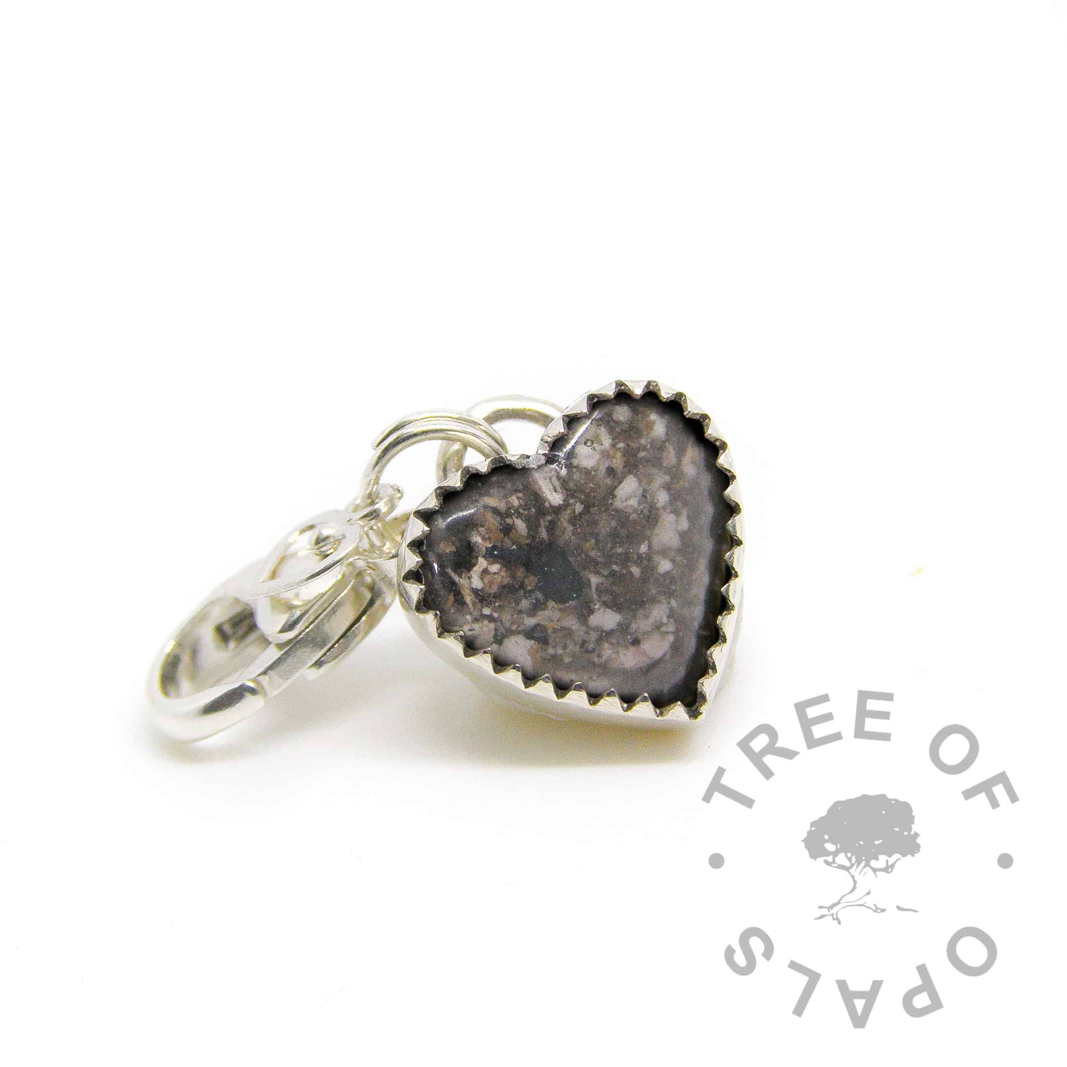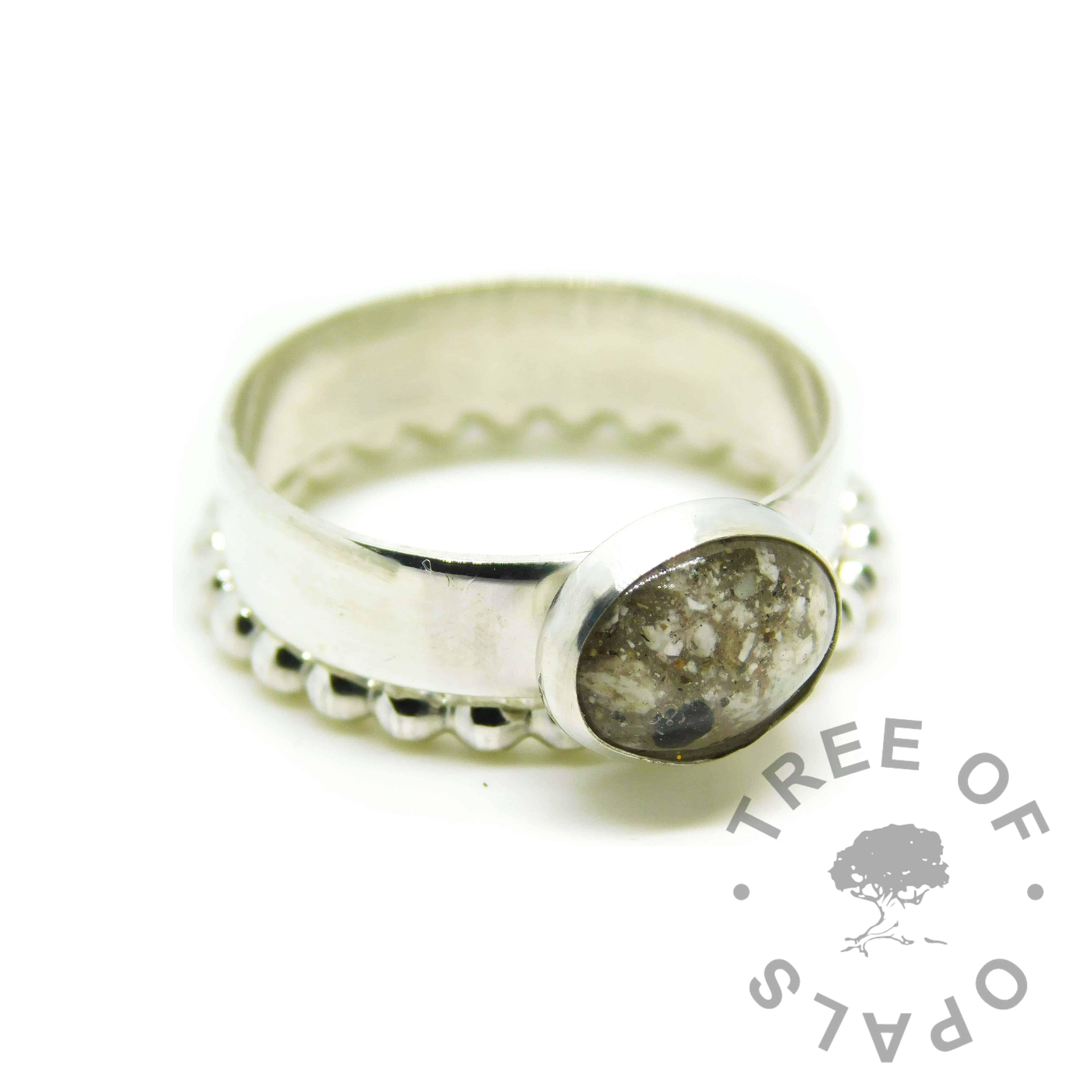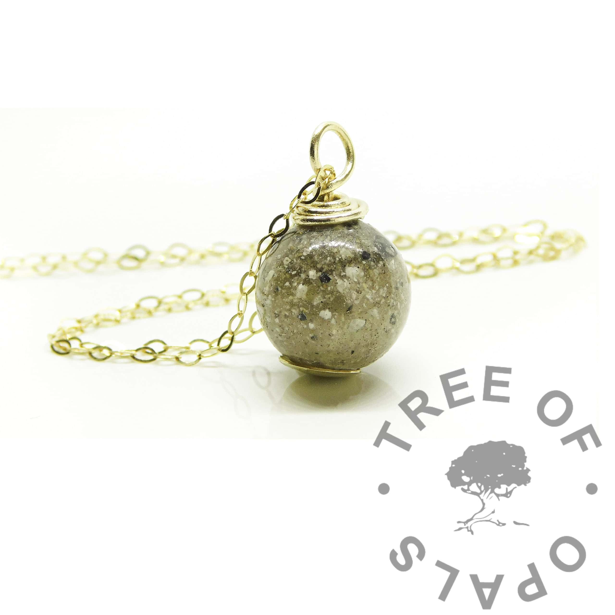 Every cremation ashes keepsake jewellery piece we make is completely individual. That’s because the colour of your loved one’s cremation ashes can vary from volcanic black to almost pure white with everything in between. It’s normal to see green, pink and blue along with the white, black and brown flecks in cremains. You can combine them with your loved one’s birthstone or add a colour option or choose classic cremation ashes.