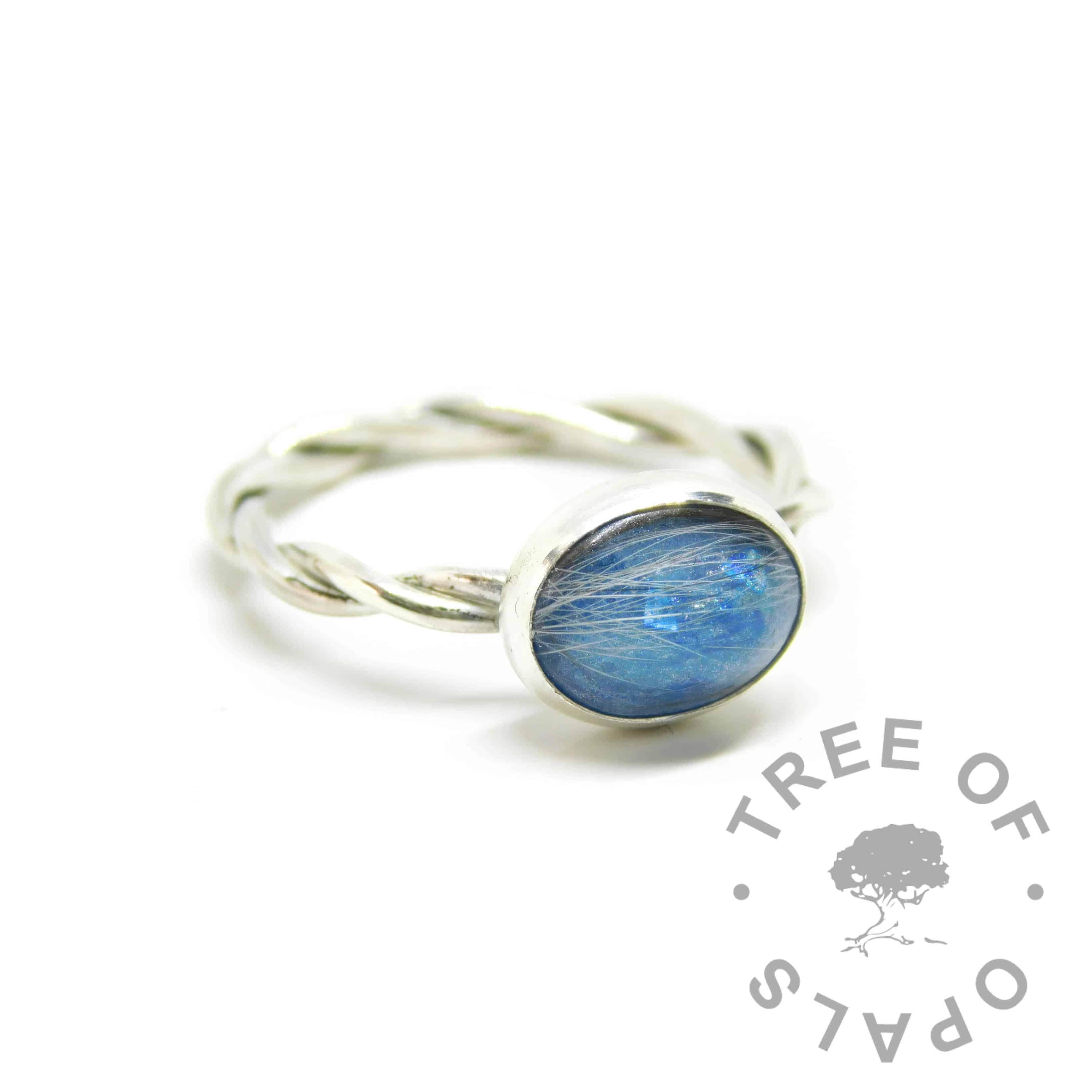 Examples of white and grey hair jewellery made with resin. This gallery shows you examples of how fur and locks of hair that are grey, clear, white, salt and pepper or very light blonde will look in resin. A good way to get an idea of how visible the hair will be in resin is by holding a lock under water – if it’s visible in the water then it is more likely to be visible in resin. If you can’t see it very well under water then it might not show up in the finished piece (for example, white or light blonde hair).