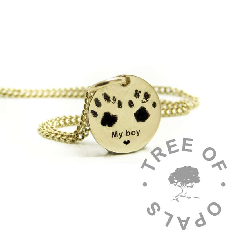 All of our jewellery is engravable either by itself or with an accessory. You can choose their name and perhaps a special memorial phrase, and Nikki loves to add paw prints to transform pieces into a completely personal design. You can add a paw print emoji or if you’ve had their prints. If your friend is still with you, order an Inkless Wipe Kit from Amazon Prime next day delivery.