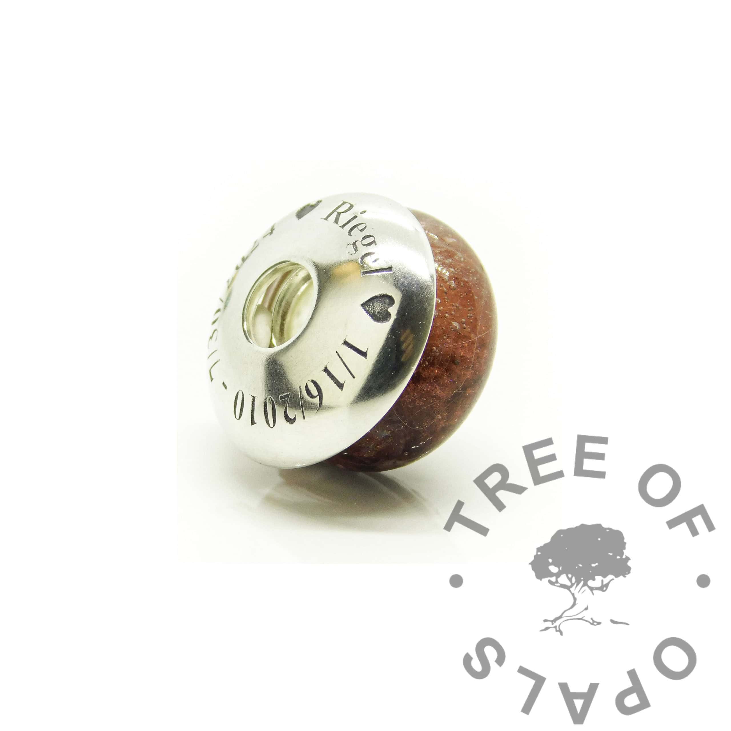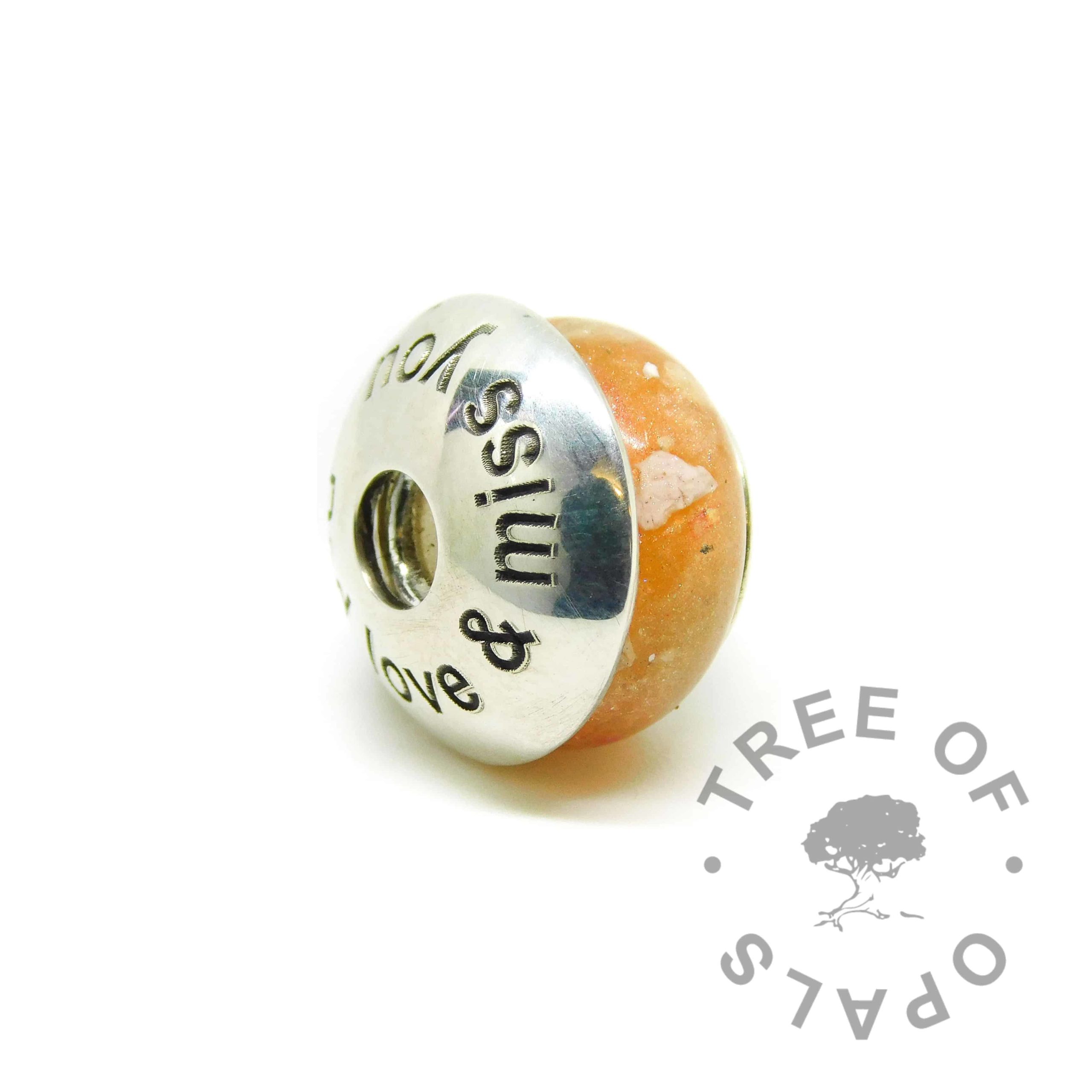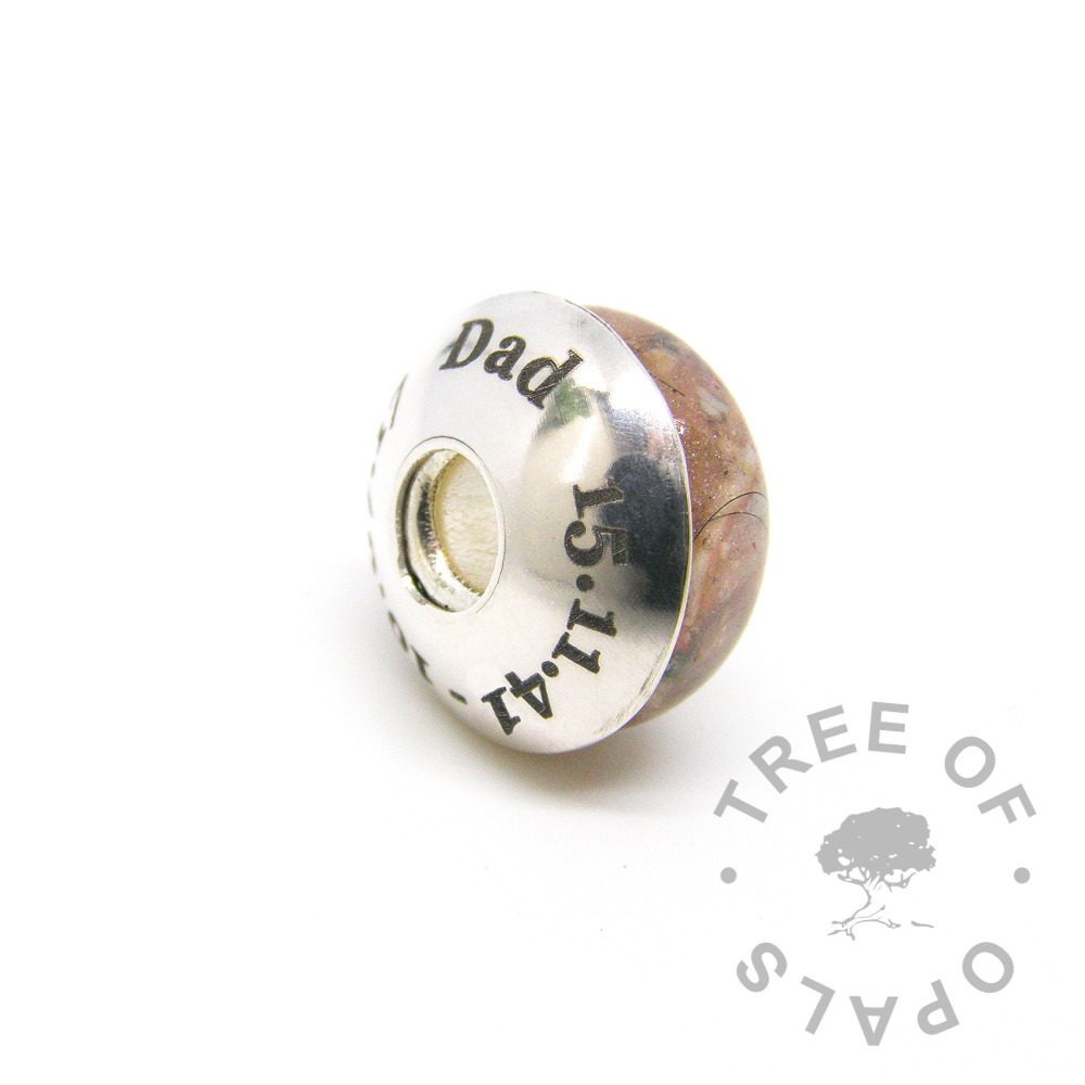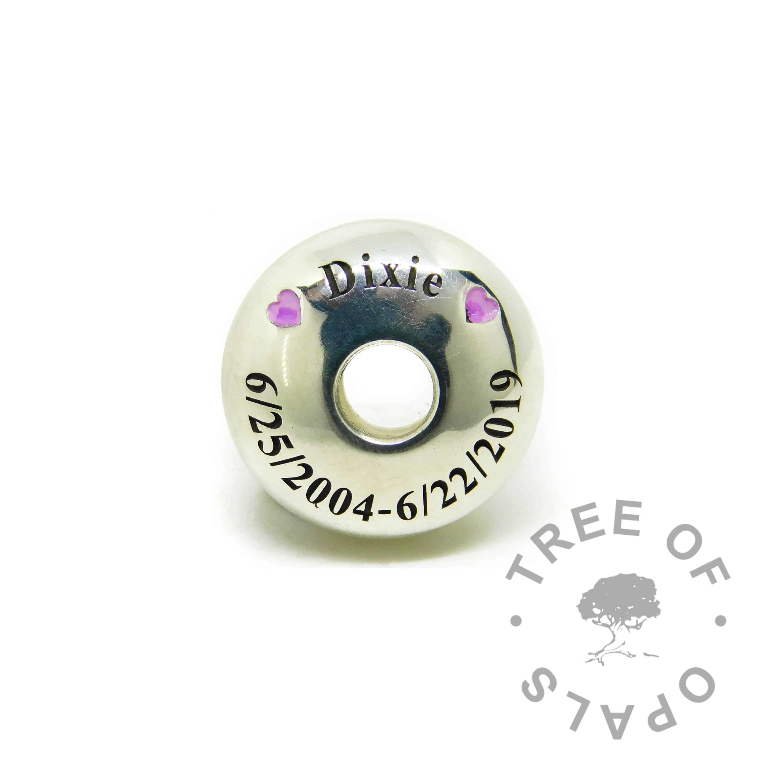An engravable bead washer is a beautiful way to add some information to your charm bead on a Chamilia or Pandora bracelet. Alternatively, our bead cores themselves can now be engraved too! Can also be handstamped here!