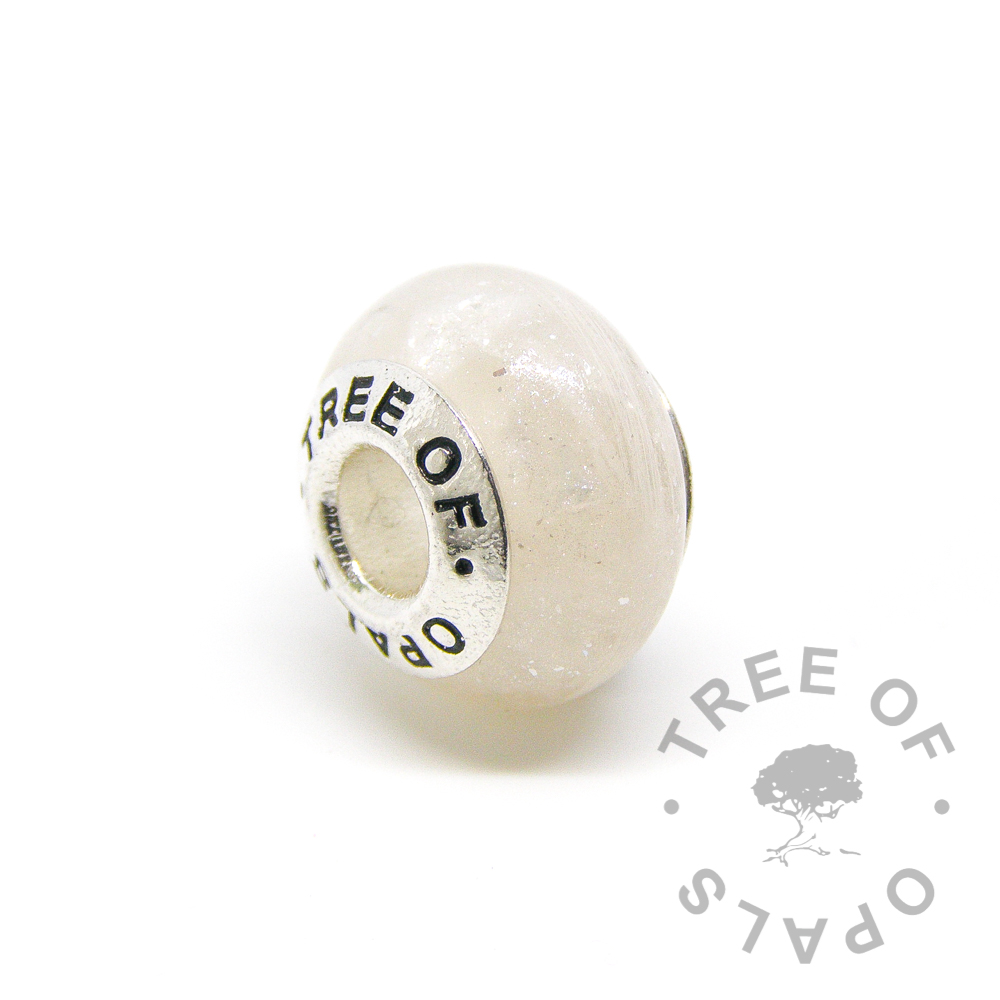 Solid gold lock of hair orb for necklaces and dangle charm bracelets. Photos don’t show every detail so we can cast your loved ones’ hair, your little one’s first curl or a little of your pets’ fur into a lock of hair gold Lock of Hair Pearl with crystal clear resin.