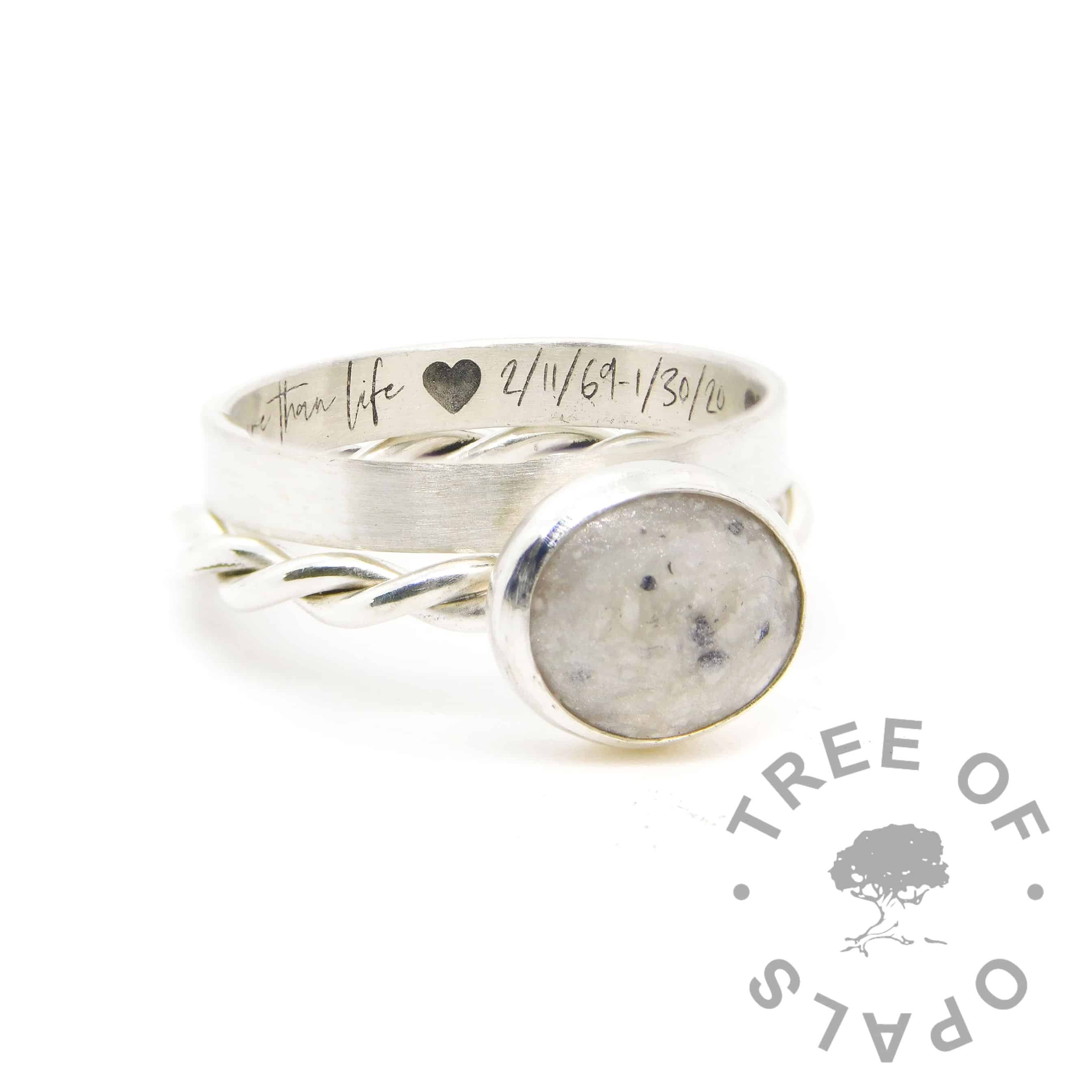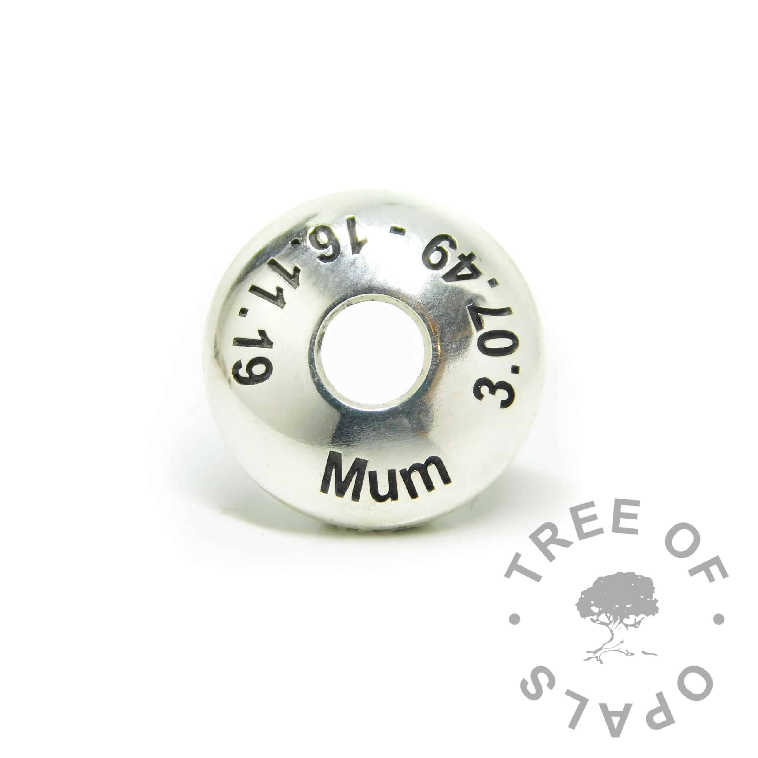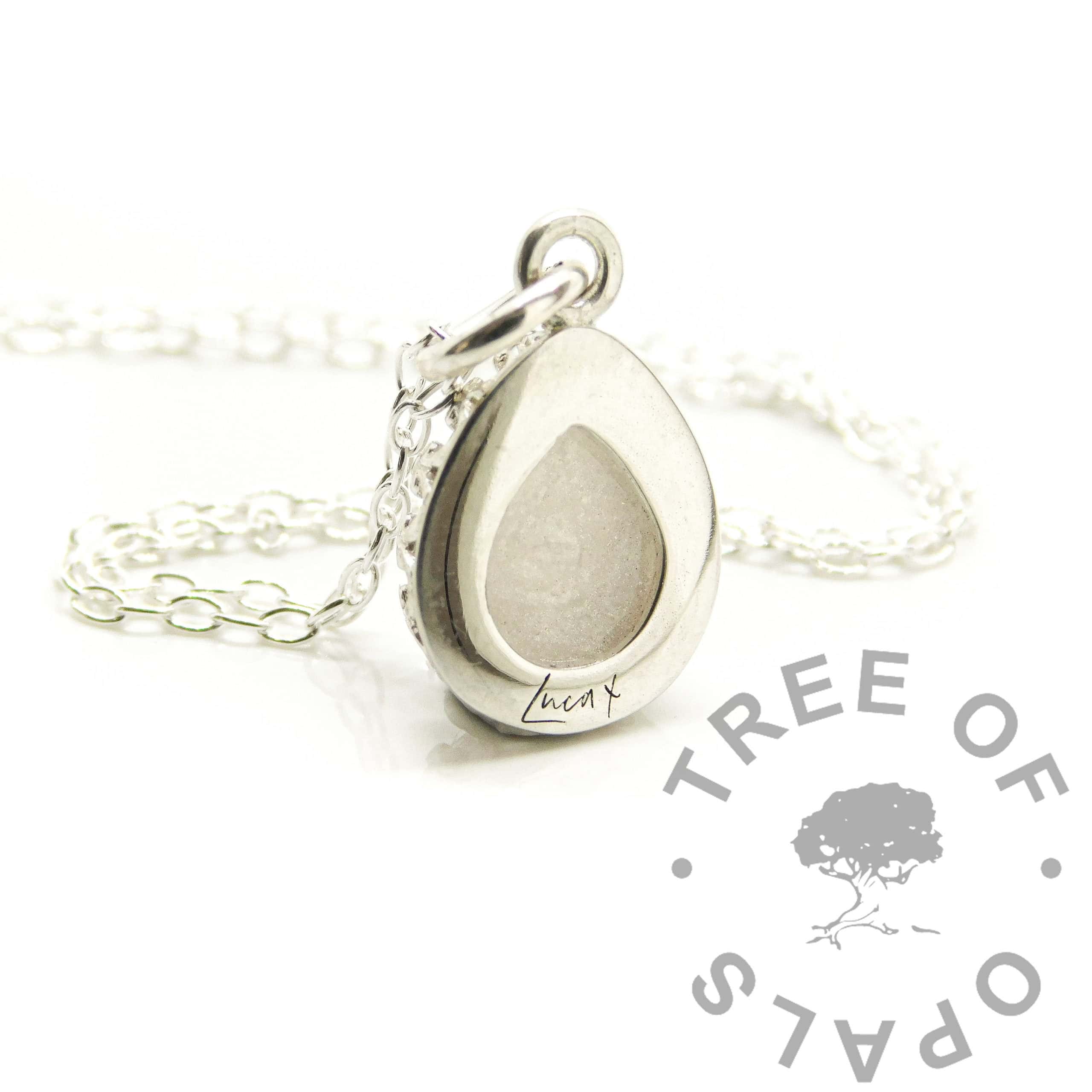 Text Engraving addition to any engravable jewellery item. Many of our pieces can have breastfeeding or memorial jewellery engraving and each piece we make is completely individual. Lots of clients choose to have their jewellery engraved with a message of love, remembrance, dates and names.