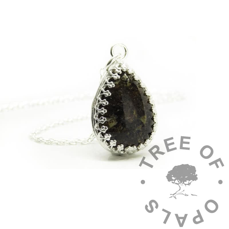 Beautiful Crown Teardrop Blood Necklace. We will post you a sending kit. Choose a resin colour, free birthstone and free engraving