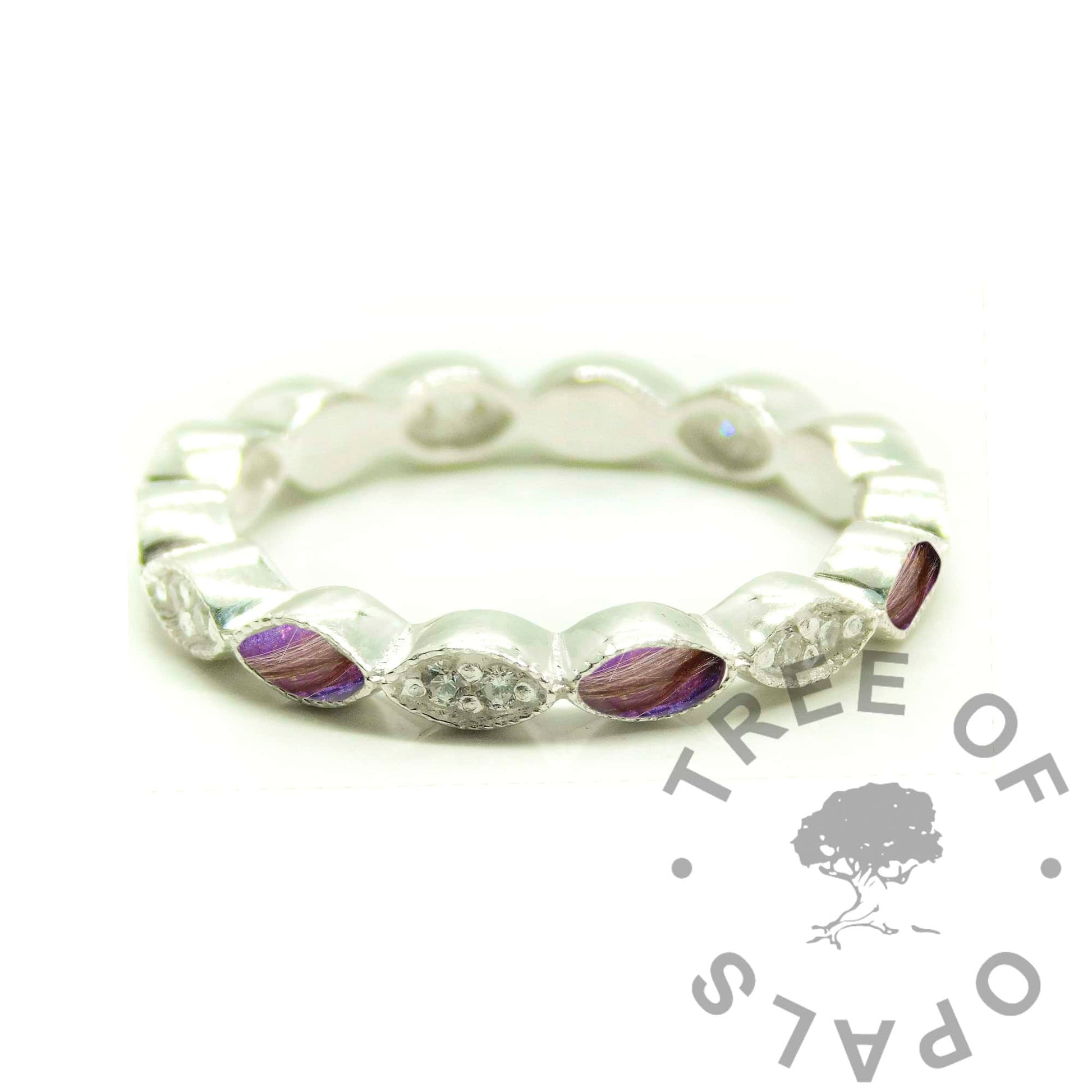 These rings are made from EcoSilver solid sterling silver 925 purity. If you'd prefer to DIY this ring then please see the listing here on our sister site Keepsaker Supplies and order it as a hair DIY kit. The crystals in these rings are cubic zirconia.