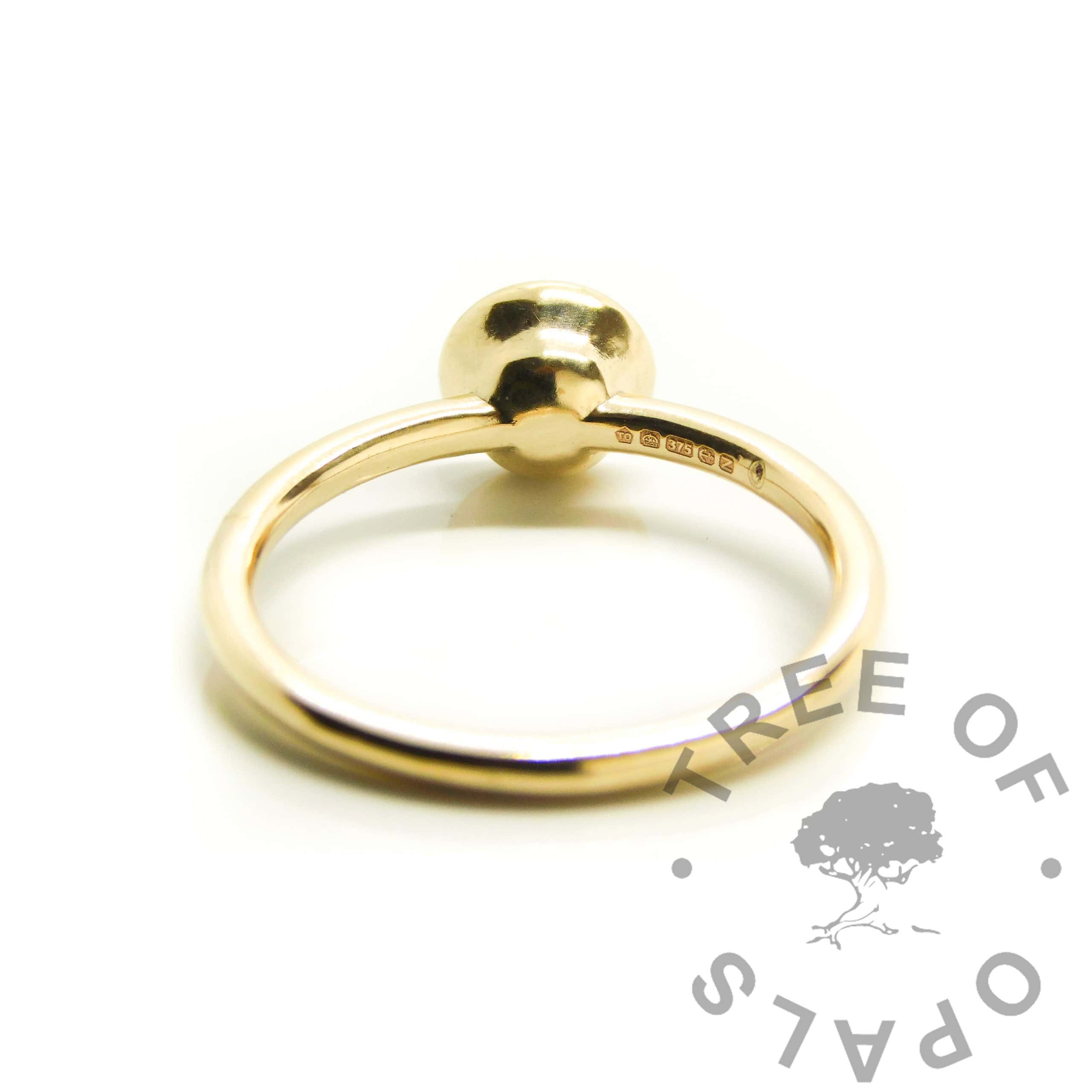 Together we can work on the design, you can choose from any of our gold jewellery designs, or we can create something entirely new and bespoke. Our gold jewellery collection is here. Finished pieces over 1g will be hallmarked at the Birmingham Assay Office with our Tree of Opals maker’s mark.